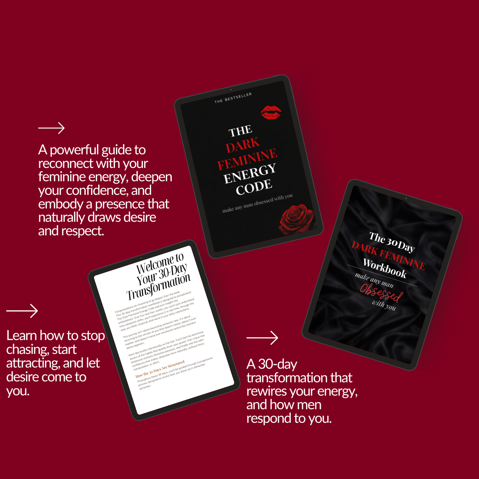The Dark Feminine Energy Code is your step-by-step system for reclaiming your mystery, mastering your boundaries, and shifting into the magnetic energy that forces men to pursue, without you lifting a finger.