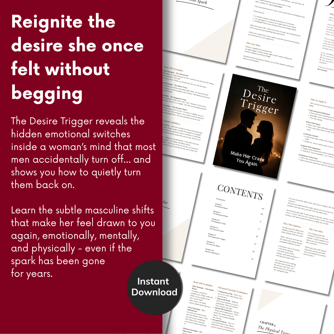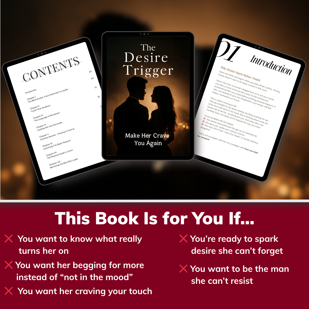 The Desire Trigger teaches you the skill most men never learn: how to spark her arousal before you touch her, build it until she’s craving more, and lead her into unforgettable moments of desire.